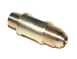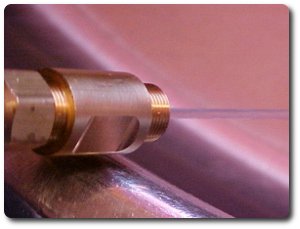 The FuelReducer converts liquid fuel flow from high volume flow to a fine centralized stream. The output fuel pressure is automatically increased for the fuel being streamed out of the FuelReducer. Because the FuelReducer is machined to a preset diameter to allow a specific amount of fuel flow the increased fuel pressure is consistent throughout the driving speed range. The fuel flow reductions that is being achieved in the ones that are currently being sold are like the photo above. The flow is reduced from the fuel line (demonstrated in image above) by 10-25%. Some vehicles might have better than a 25% reduction. (example; going from 16 mpg to 22 mpg = 37.5% reduction in fuel consumption) .