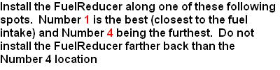 Installed as directed, the FuelReducer can help reduce the pain and headaches of high gas prices. The FuelReducer reduces your vehicle's insatiable appetite for fuel by reducing its diet of fuel. A reduction in fuel is healthier for you, your wallet, your vehicle and the environment. Trim the engine's diet by reducing its intake. Your vehicle will run better with a little less fuel. Burning less fuel can also reduce emissions. You'll spend less time worrying about prices going up and you'll go further on the same amount of fuel just by installing the FuelReducer on your vehicle. The FuelReducer has been sold via this website and our distributors since February 2006.